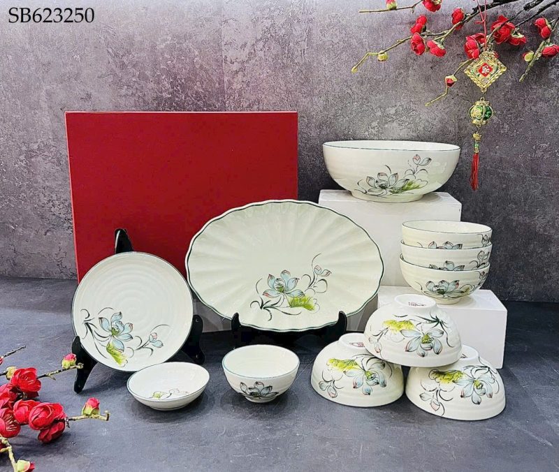 | Thông tin thêm: | Bộ bát đĩa 11 sản phầm gồm: 6 bát cơm, 1 đĩa tròn 18, 1 đĩa bầu dục s2, 1 tô nông 19.5, 1 mắm tròn, 1 muối tròn |