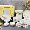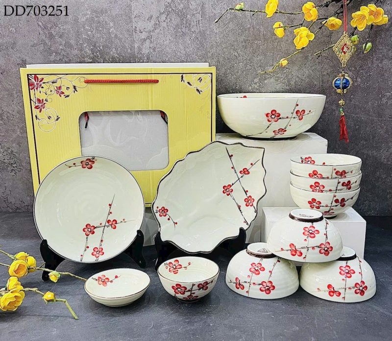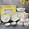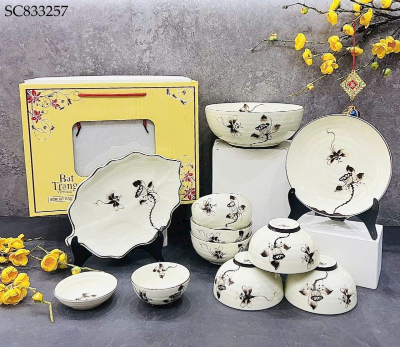 | Thông tin thêm: | Bộ bát đĩa 11 sản phầm gồm: 6 bát cơm, 1 đĩa lá dâu S2 – R17 D24, 1 đĩa tròn 18, 1 tô nông 19.5, 1 mắm tròn, 1 muối tròn |