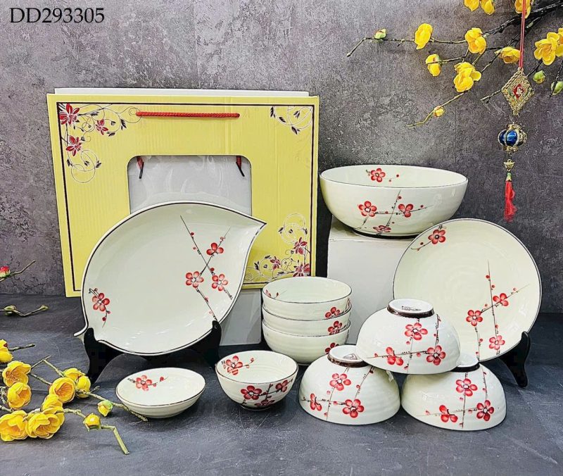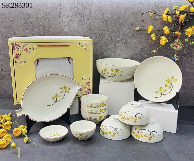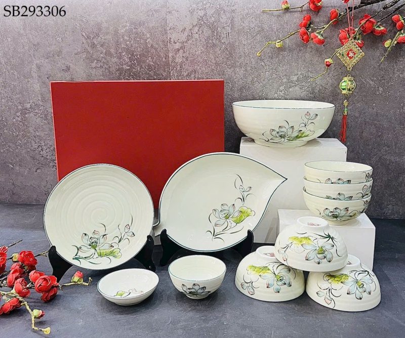 | Thông tin thêm: | Bộ bát đĩa 11 sản phầm gồm: 6 bát cơm, 1 đĩa lá xoài – R17 D26, 1 đĩa tròn 18, 1 tô nông 19.5, 1 mắm tròn, 1 muối tròn |