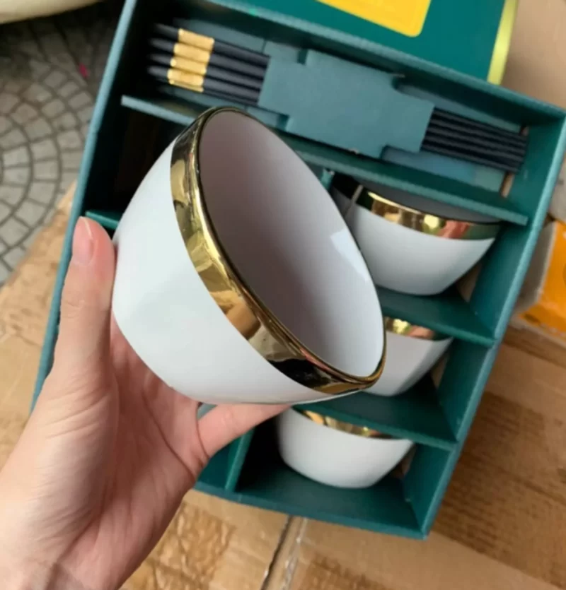 Hãy là người đầu tiên nhận xét “Bộ 6 bát cơm viền mạ vàng Trung Quốc- kèm đũa”