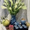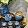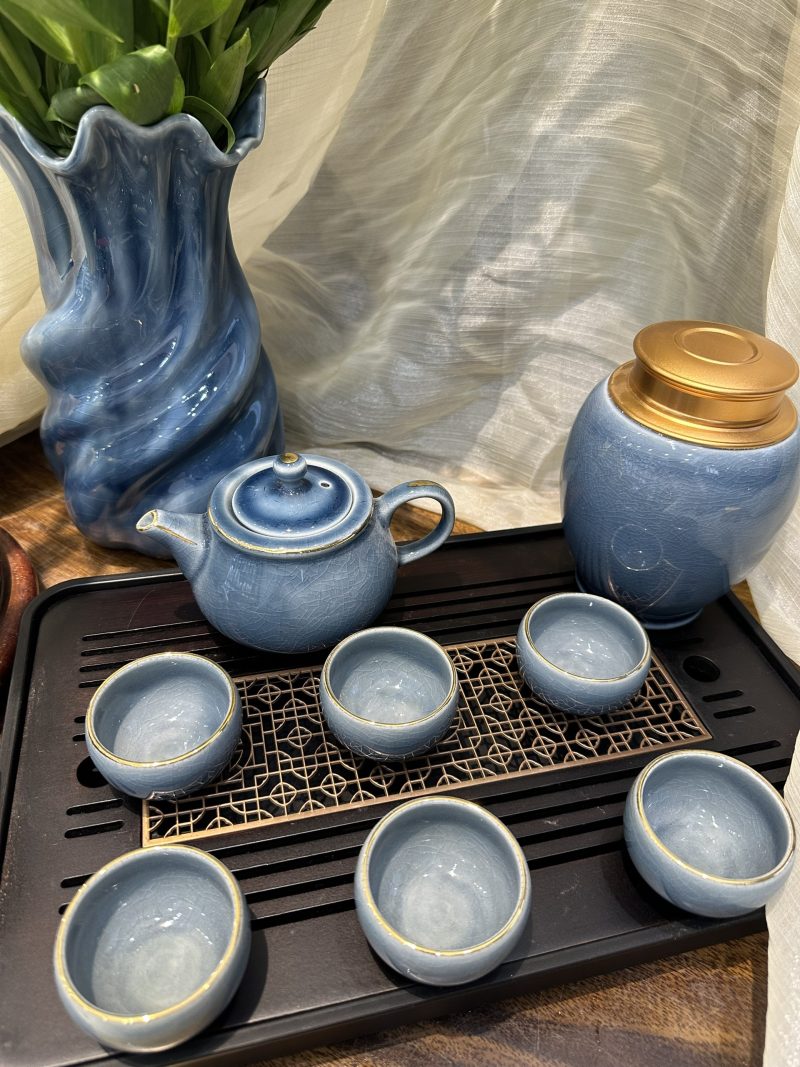 - Màu sắc: Men trơn xanh ngọc hoặc xanh lam nhạt kẻ chỉ vàng, kết hợp hài hòa giữa sự dịu mắt và điểm nhấn sang trọng.