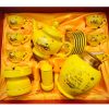 - Bộ sản phẩm gồm: 1 ấm trà, 6 chén, 7 đĩa kê, 1 lọ chè tròn, 1 ống tăm và 1 gạt tàn đôi.