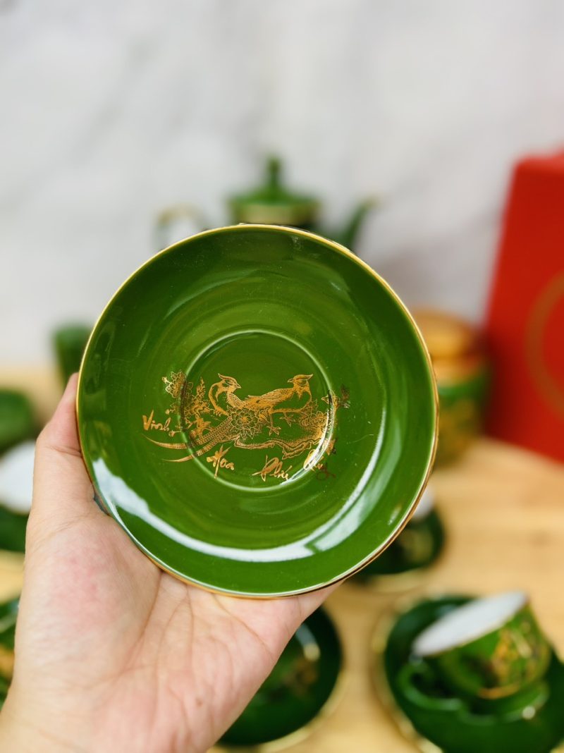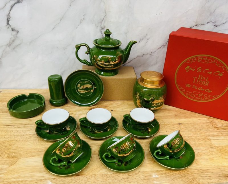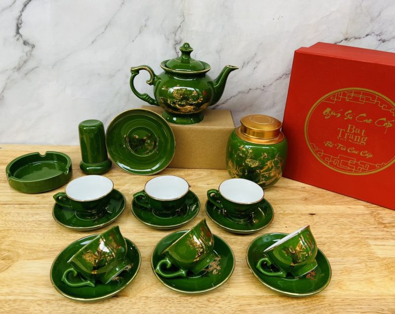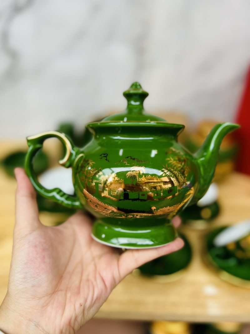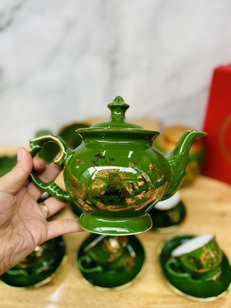 Với màu xanh lục bảo trầm sang, điểm chỉ vàng tinh xảo và kiểu dáng đài cát thanh lịch, bộ ấm trà màu quà tặng không chỉ là bộ trà mà còn là biểu tượng cho sự thịnh vượng, chuyên nghiệp và đẳng cấp khi tri ân khách hàng, đối tác.