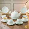 Đặc biệt, các chi tiết như miệng ấm, miệng chén, quai cầm, viền đĩa kê có thể được vẽ vàng thủ công, tạo điểm nhấn sang trọng, khẳng định dấu ấn thương hiệu cao cấp.
