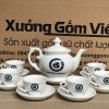 - Kỹ thuật in logo: In lưới hoặc decal chất lượng cao – in 1 mặt hoặc 2 mặt trên ấm, chén và đĩa kê.