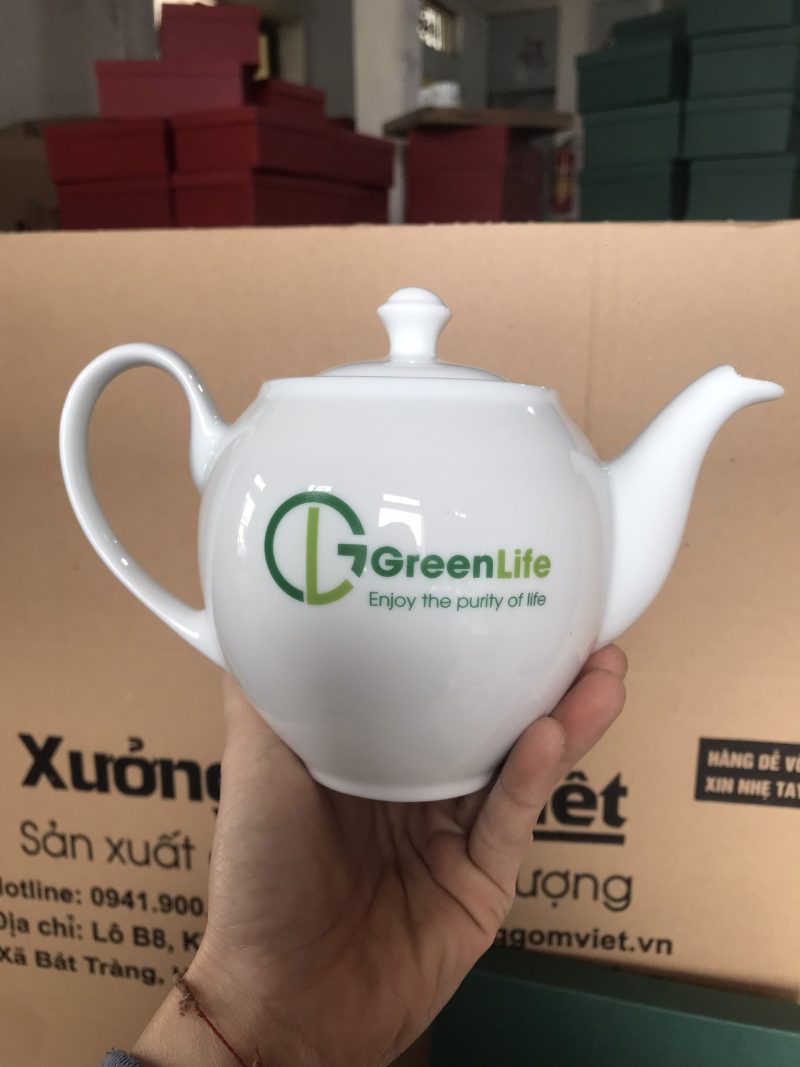 Dung tích ấm trà lên đến 650ml phù hợp cho các buổi tiếp khách tại văn phòng hoặc làm quà tặng trong các sự kiện lớn. Đặc biệt, khả năng in logo thương hiệu và trang trí vẽ vàng giúp bộ ấm trà trắng in logo trở thành một công cụ truyền thông tinh tế, giàu ý nghĩa.