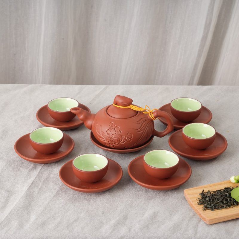 - Bộ sản phẩm gồm: 1 ấm trà, 6 chén, 7 đĩa kê.