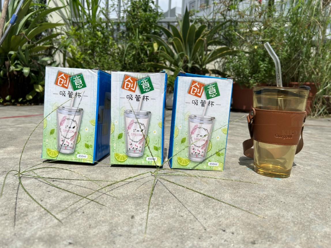 Cốc thủy tinh Trung Quốc bọc da kèm ống hút – 450ml