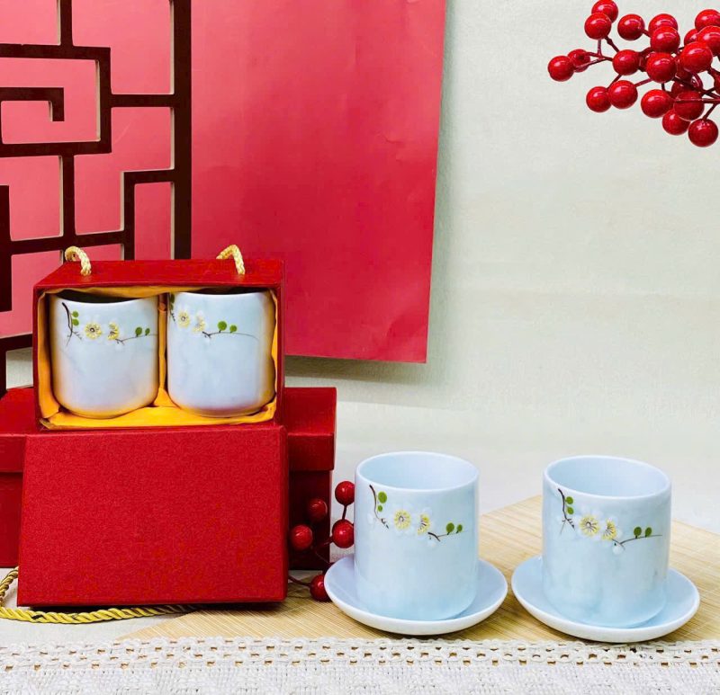 Hãy là người đầu tiên nhận xét “Bộ 2 cốc sứ vẽ tay Bát Tràng – men vân đá”