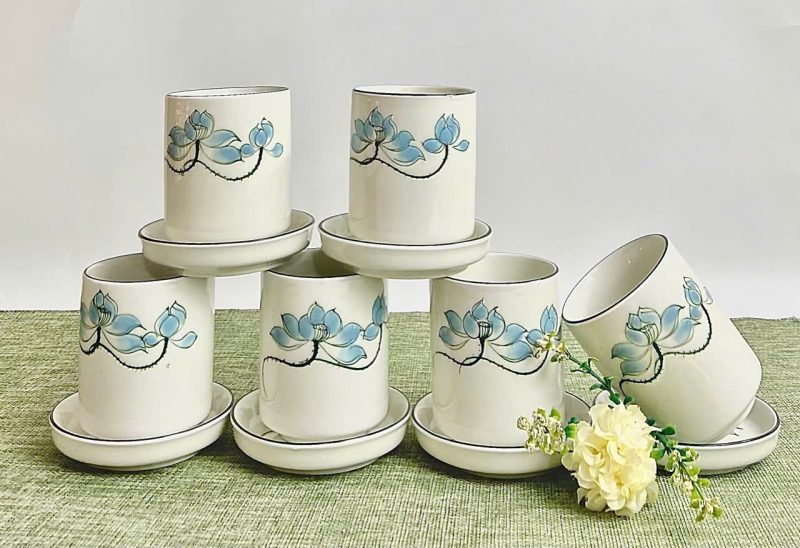 Hãy là người đầu tiên nhận xét “Bộ 6 cốc sứ Bát Tràng – Cốc trụ vẽ tay+ đĩa kê”