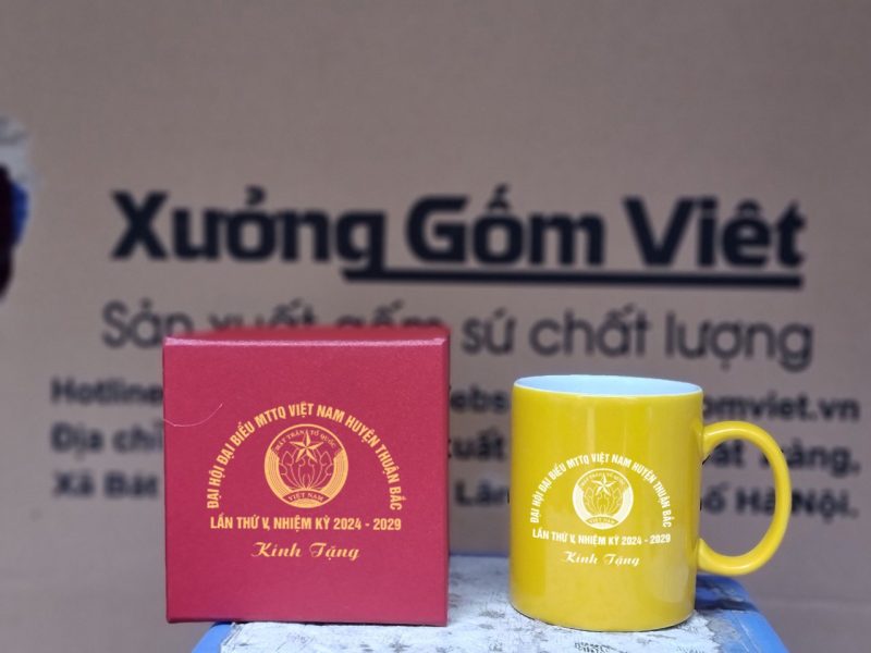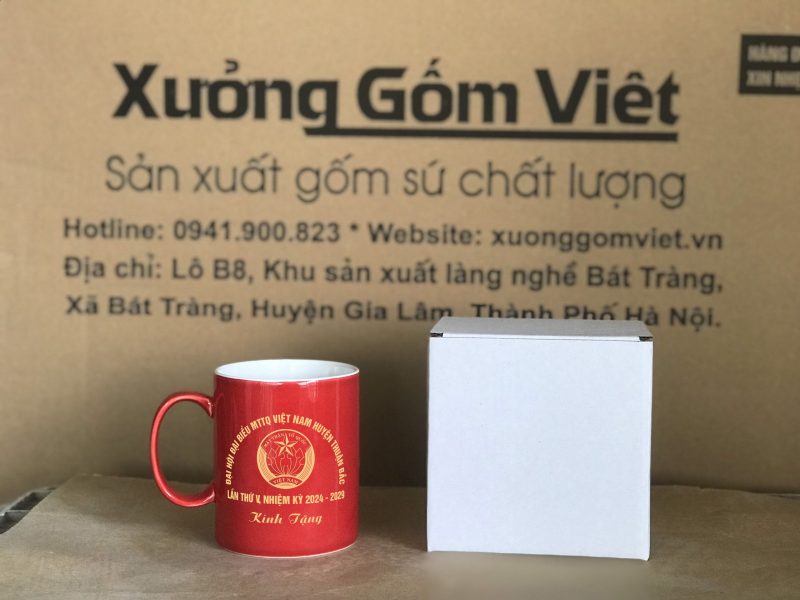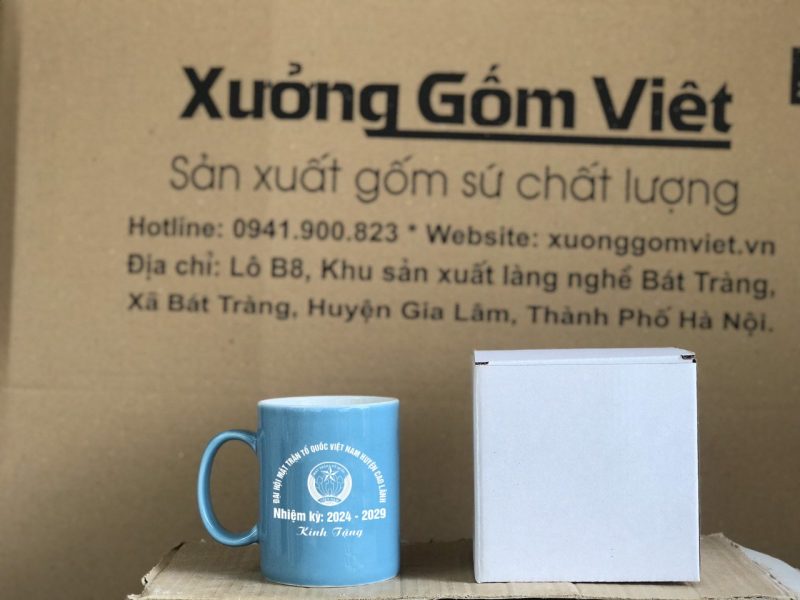 Lớp men bóng làm nổi bật màu sắc logo, giúp cốc sứ Bát Tràng in logo trở nên sống động và thu hút hơn. Đây là mẫu cốc lý tưởng để cá nhân hóa theo bộ nhận diện thương hiệu hoặc dịp tặng riêng biệt.