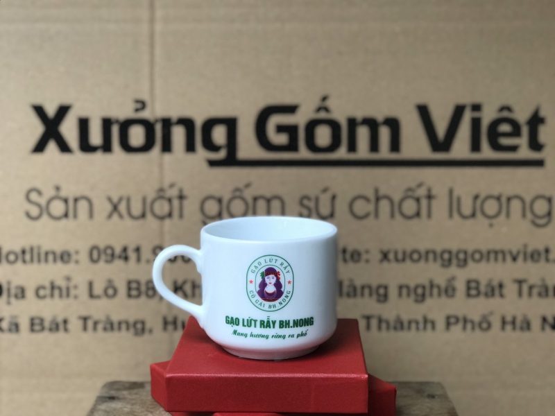 Cốc sứ Bát Tràng quà tặng in logo cho phép cá nhân hóa linh hoạt bằng cách in logo, tên thương hiệu hoặc khẩu hiệu doanh nghiệp trực tiếp lên thân cốc.