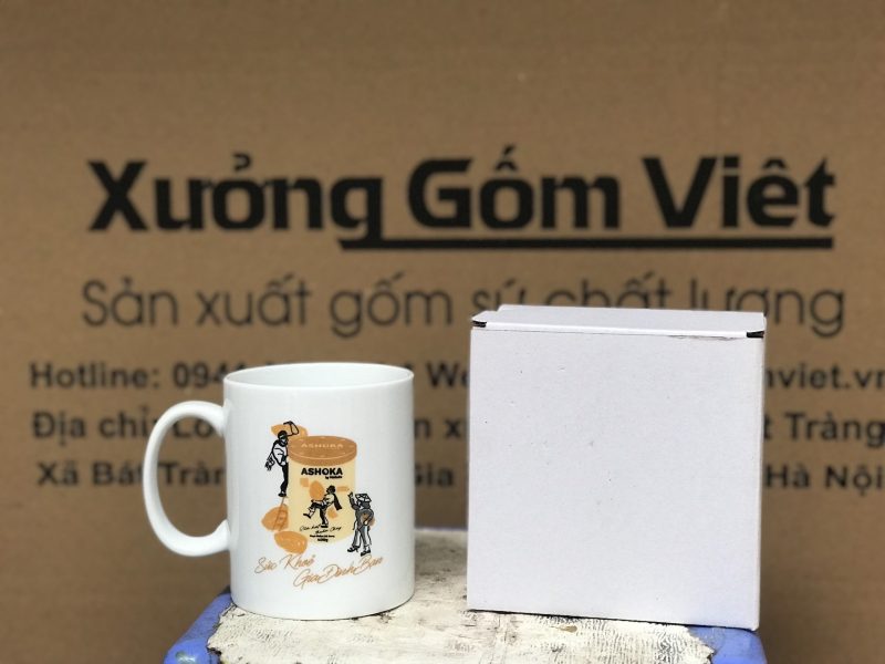 Với kiểu dáng trụ đứng kết hợp quai cầm hình chữ C dễ cầm nắm, ly sứ trắng không chỉ tiện dụng mà còn có tính thẩm mỹ cao. Thiết kế thân cốc rộng lý tưởng cho việc in logo 1 mặt hoặc 2 mặt giúp gia tăng hiệu quả truyền thông thương hiệu một cách chuyên nghiệp.