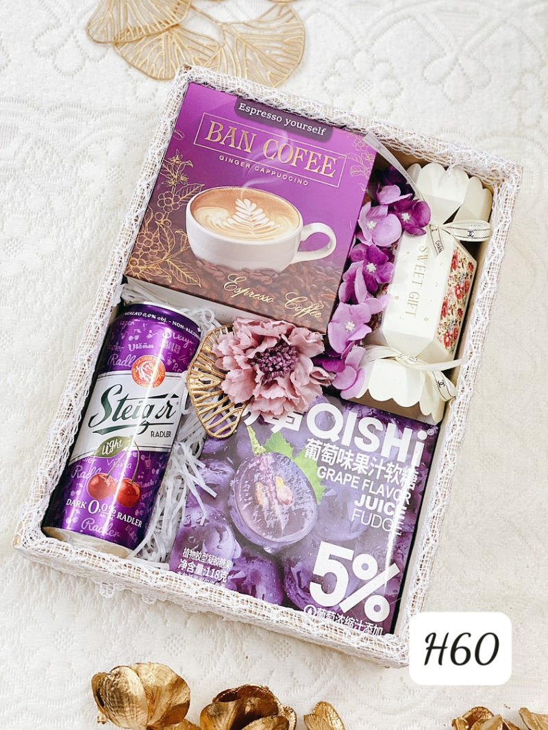 | Thông tin thêm: | Set quà tết 1 lon bia Steiger 1 hộp cà phê 1 hộp kẹo Qishi 1 hộp kẹo nơ