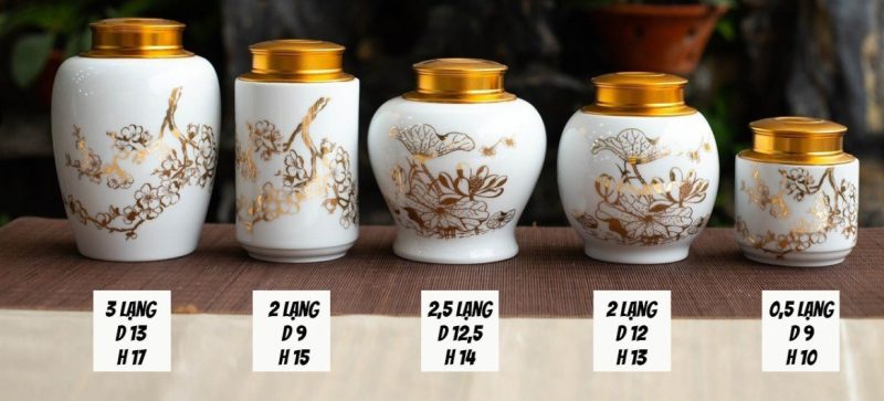 | Thông tin thêm: | Đựng 2 lạng chè giá đã bao gồm hoa văn vàng kim |