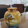 Hãy là người đầu tiên nhận xét “Lọ chè Bát Tràng dáng tròn men màu vân mây hoa văn vàng kim 200g”
