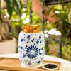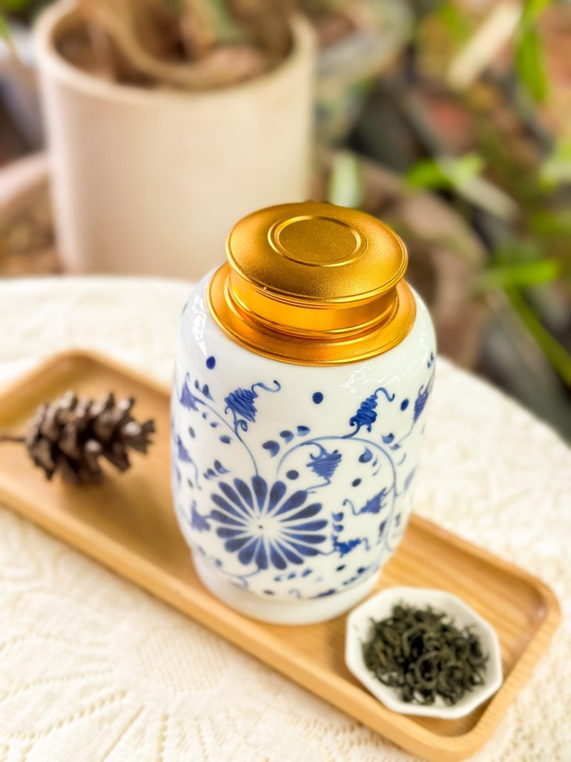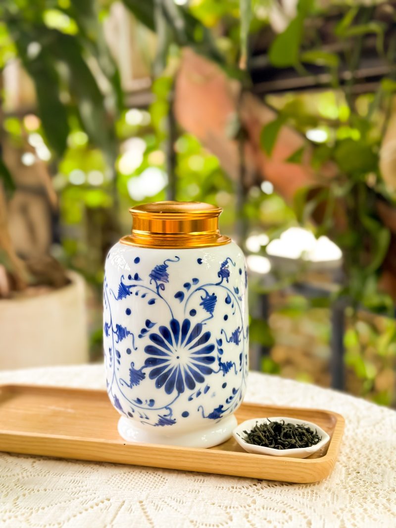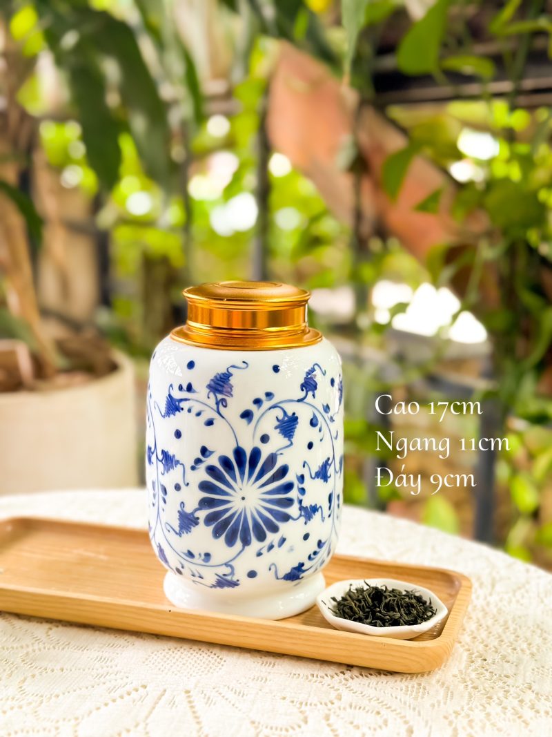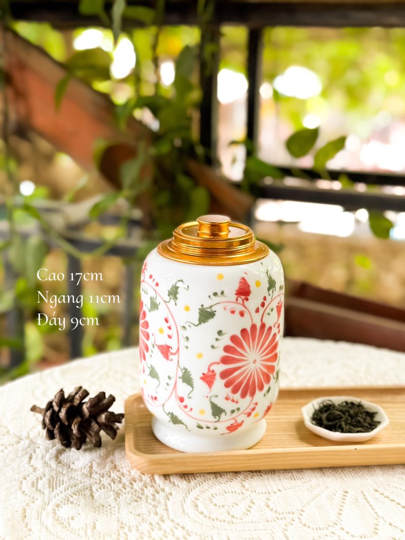Lọ chè Bát Tràng dáng trụ vẽ tay kín bình
