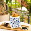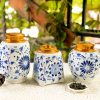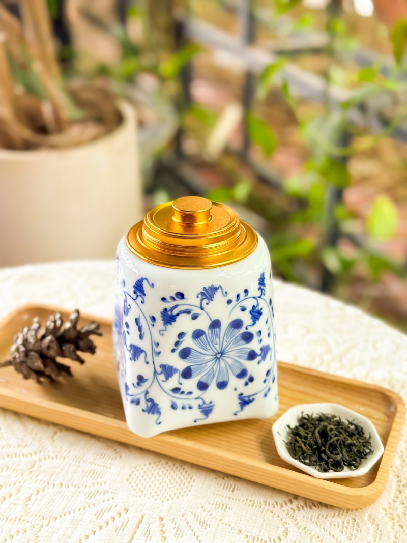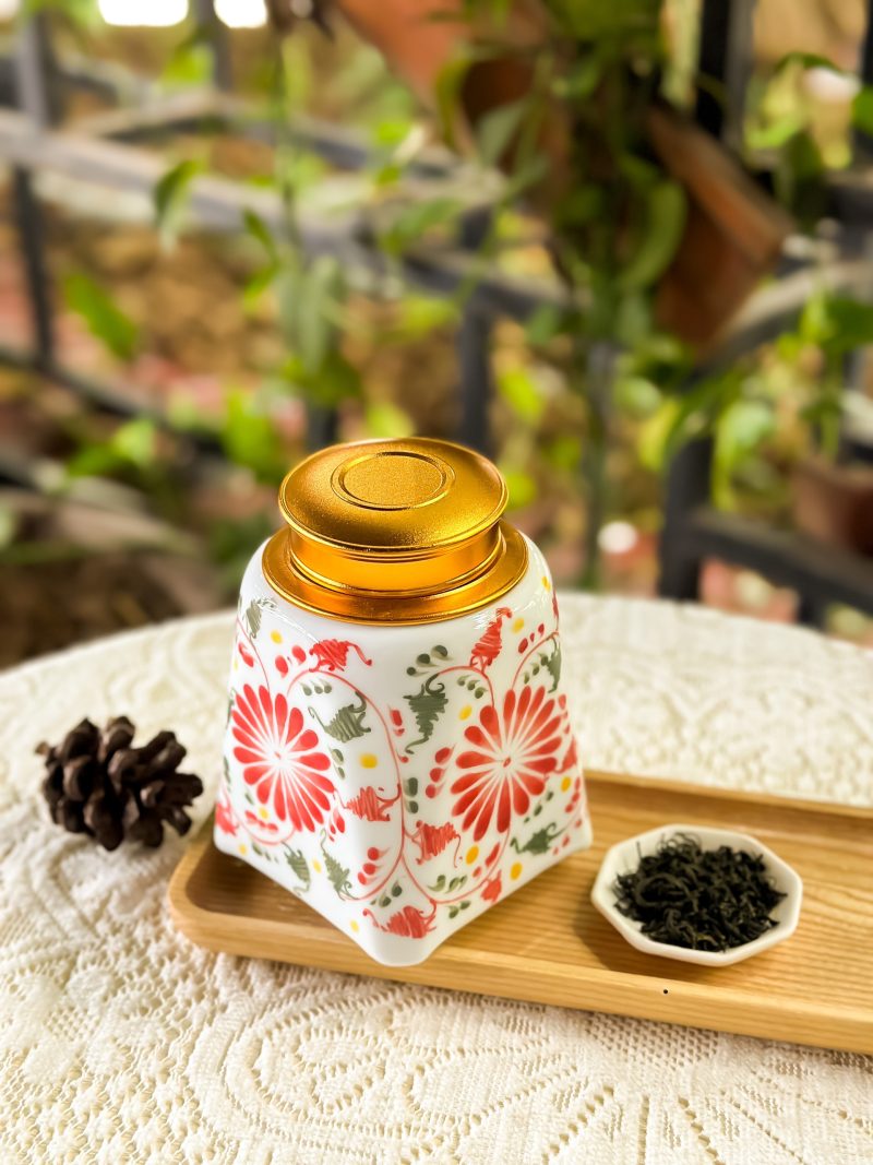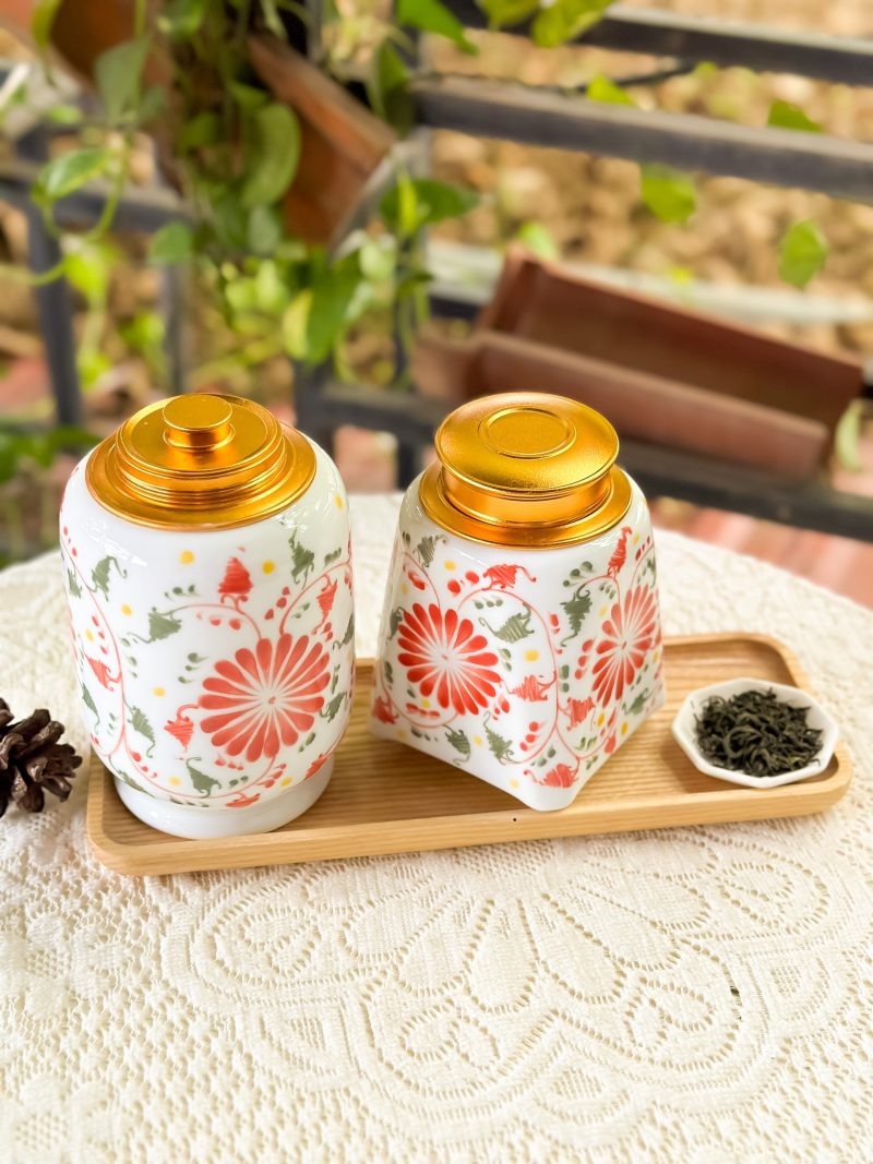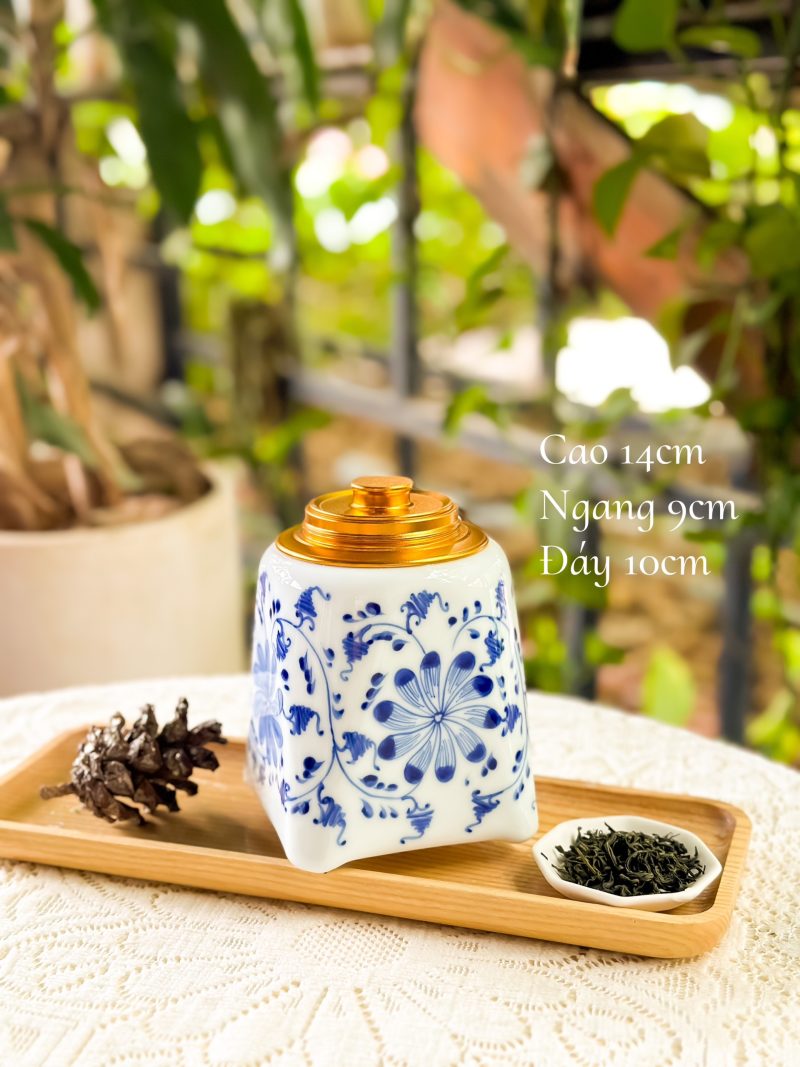 Lọ chè Bát Tràng dáng vuông vẽ tay kín bình