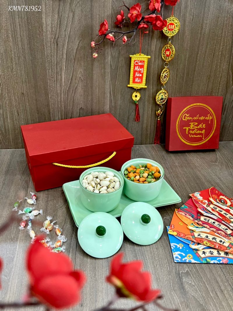 Hãy là người đầu tiên nhận xét “Bộ 2 hũ mứt tròn màu xanh – kèm khay sứ”