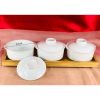 Hãy là người đầu tiên nhận xét “Bộ 3 hũ mứt tròn có quai men trắng – kèm khay gỗ”