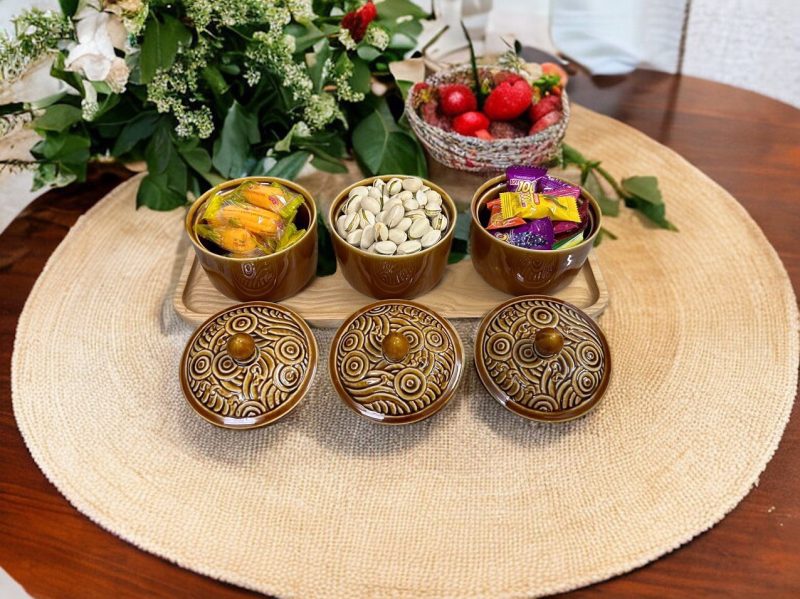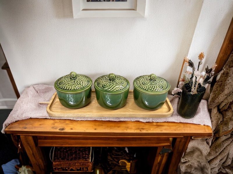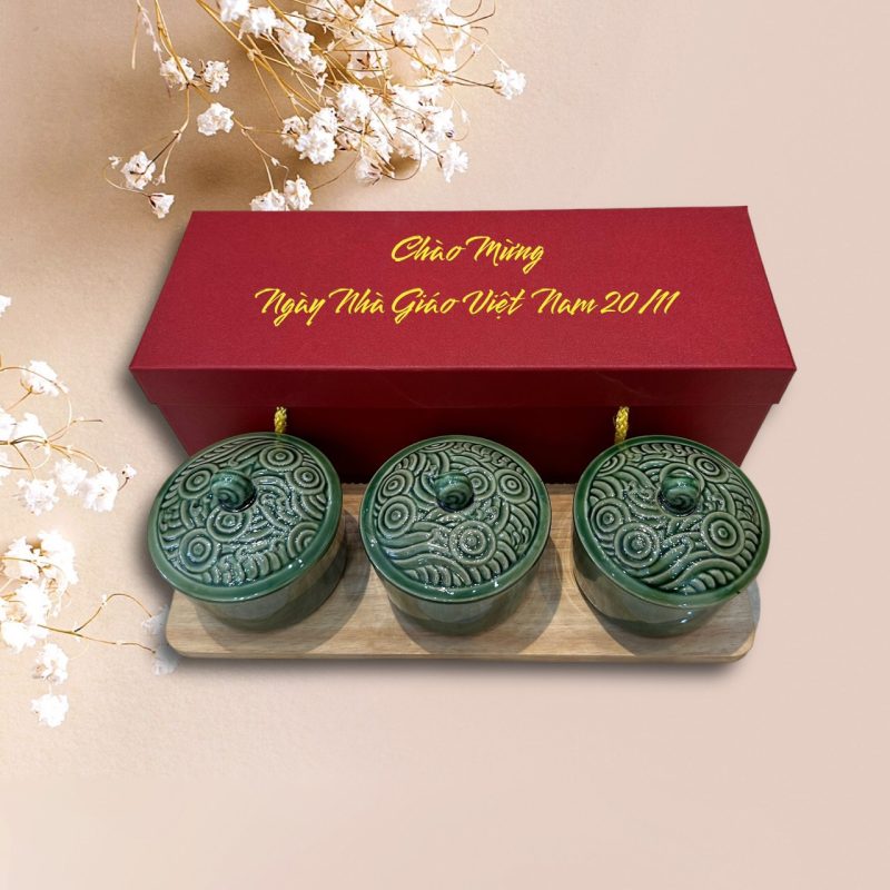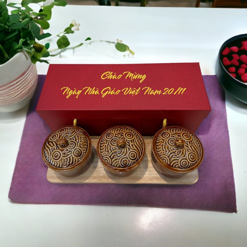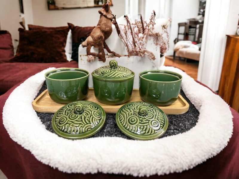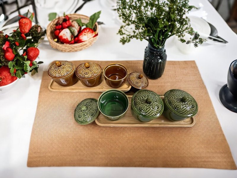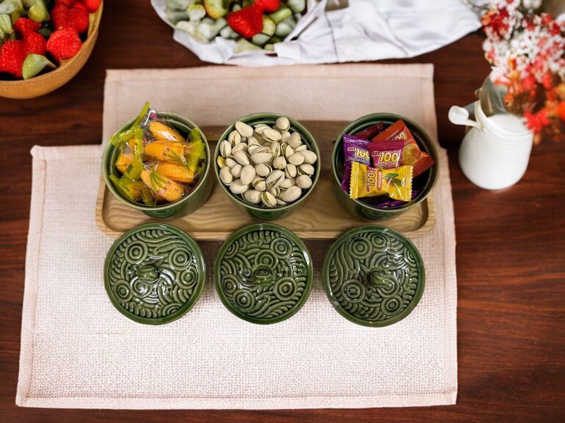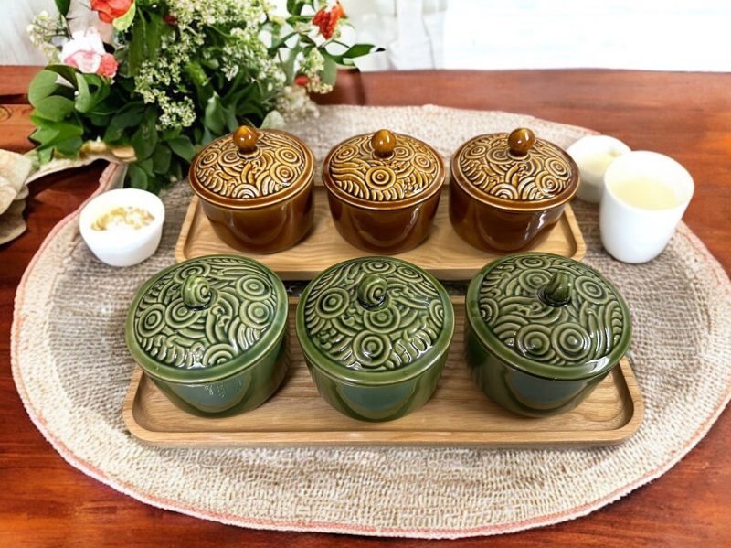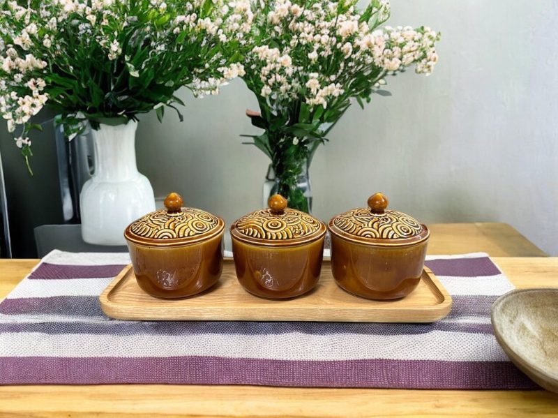 Hãy là người đầu tiên nhận xét “Bộ 3 hũ mứt tròn men màu – kèm khay gỗ”