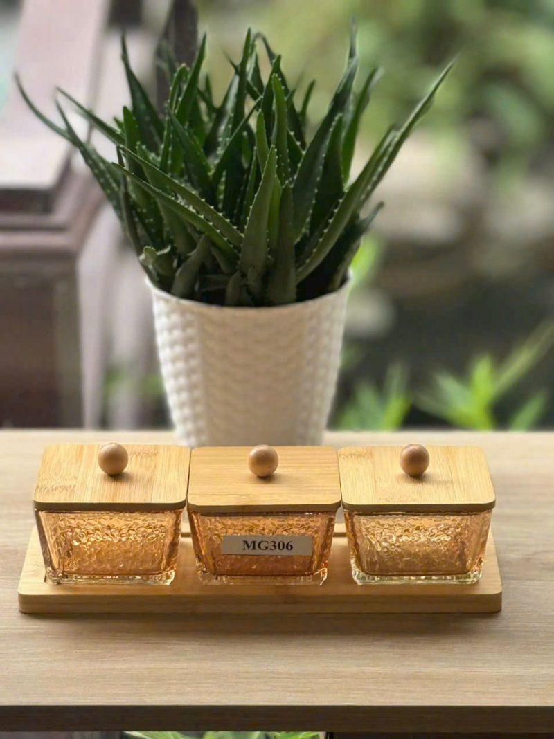 Hãy là người đầu tiên nhận xét “Bộ 3 hũ mứt thủy tinh vuông nắp gỗ MG 306 – kèm khay gỗ”