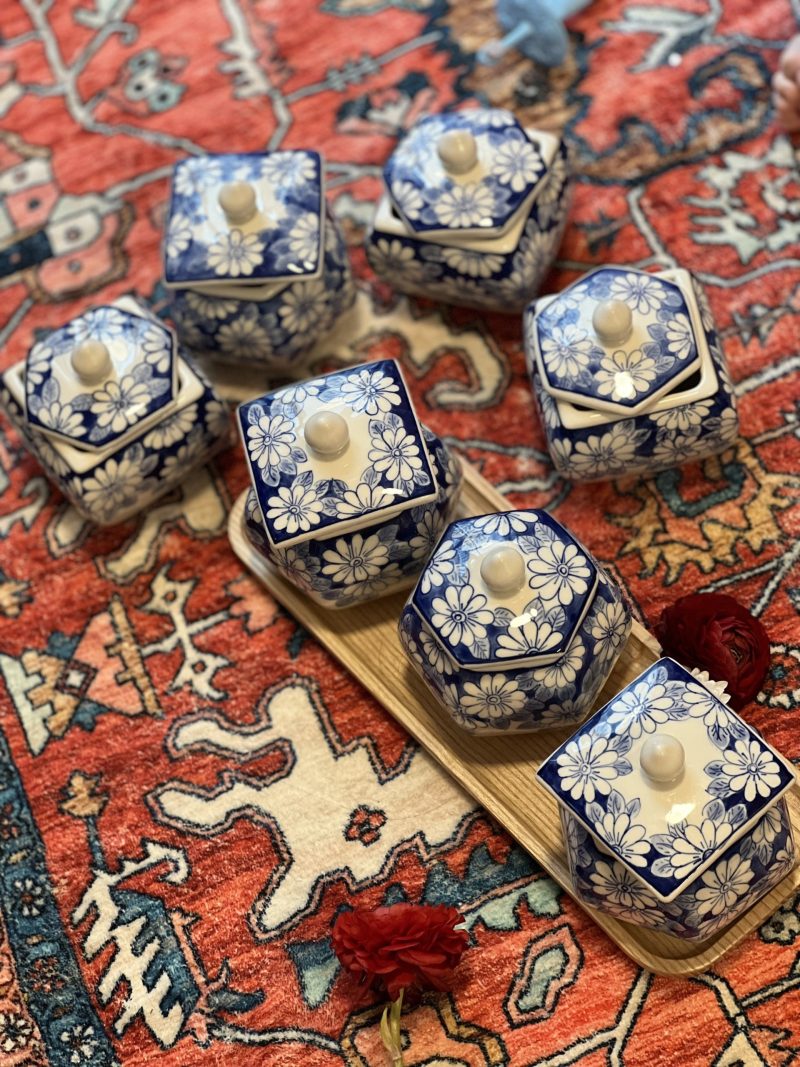 Hãy là người đầu tiên nhận xét “Bộ 3 hũ mứt hoa xanh – kèm khay gỗ”