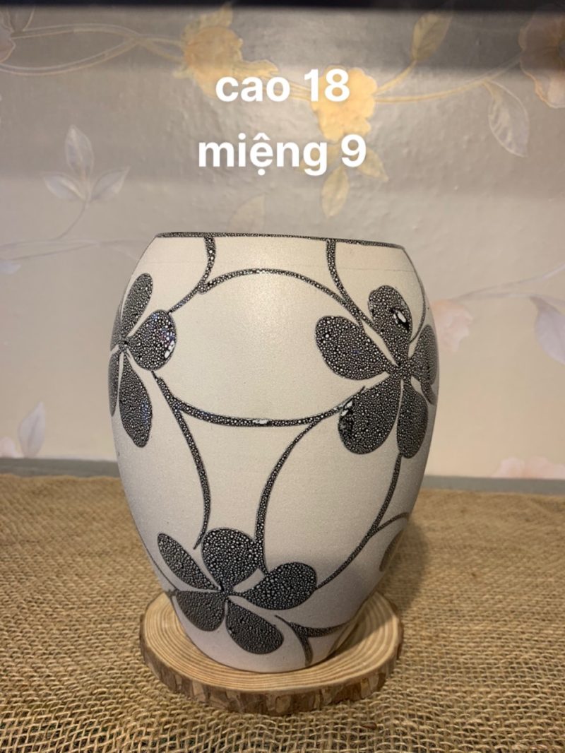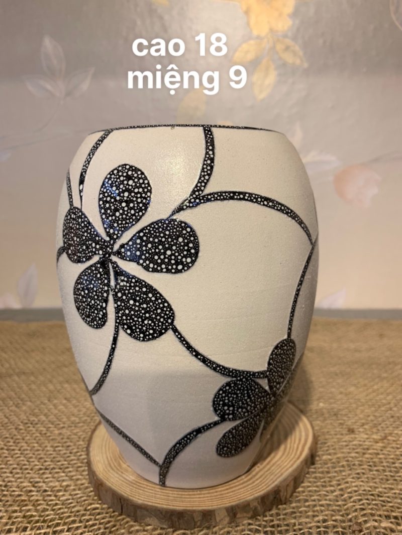 - Kiểu dáng: Dáng xoài thuôn nhẹ, thân phình, miệng loe nhẹ – tạo cảm giác mềm mại, tinh tế, phù hợp nhiều phong cách không gian.
