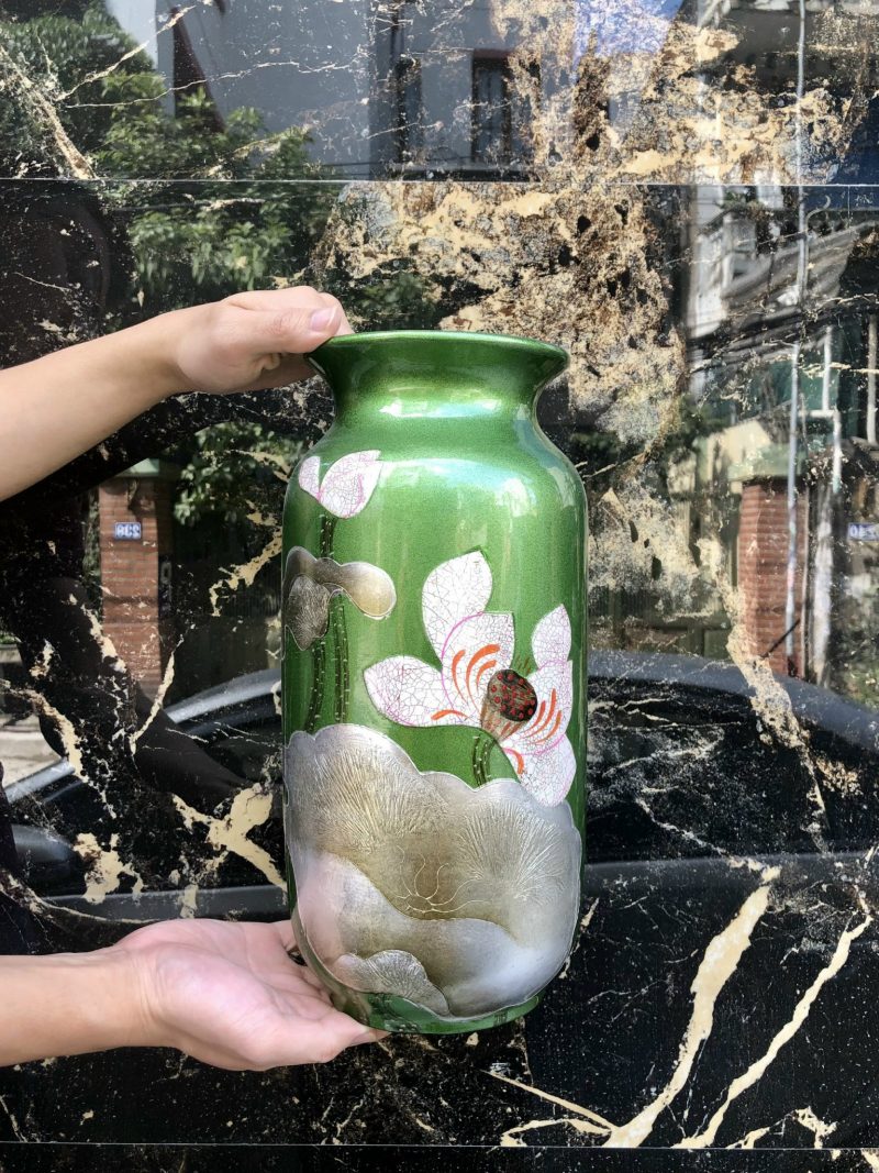 Hãy là người đầu tiên nhận xét “Lọ hoa Bí khảm sen trứng – H32”