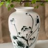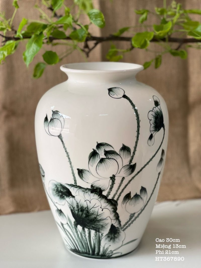 Hãy là người đầu tiên nhận xét “Lọ hoa vẽ sen đen – men trắng – H30”