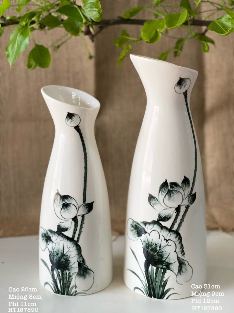 Hãy là người đầu tiên nhận xét “Lọ hoa dáng Chày vát vẽ sen đen – men trắng – H26”