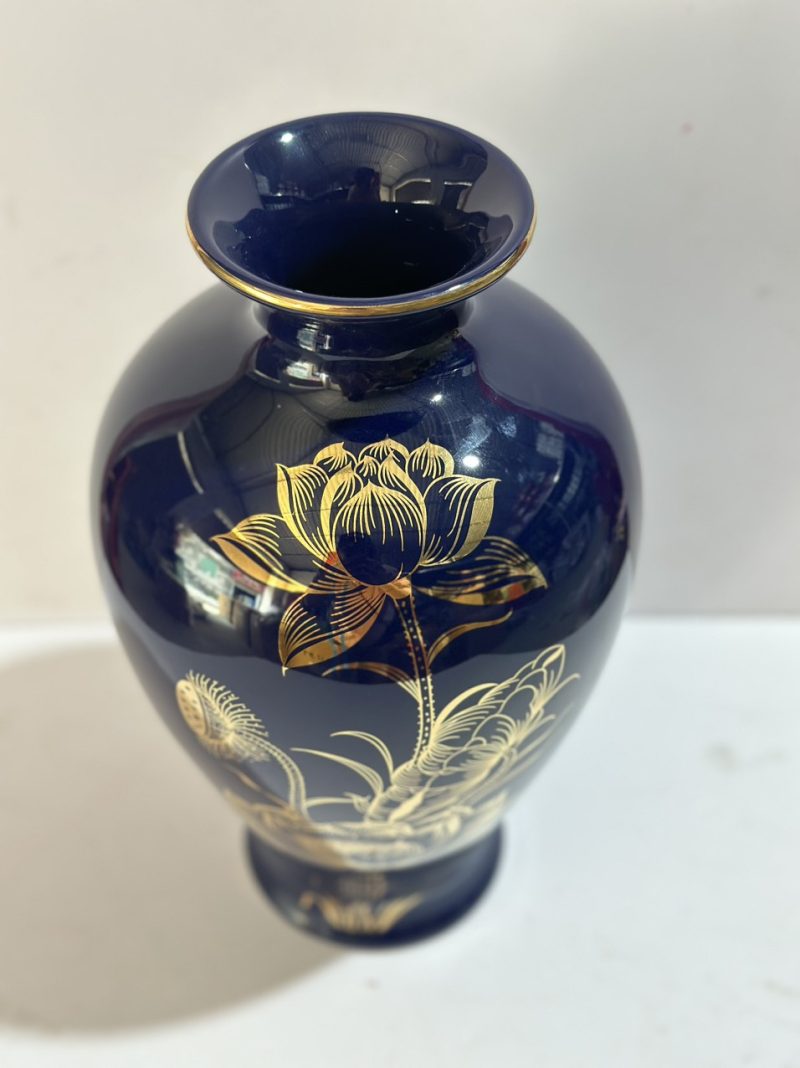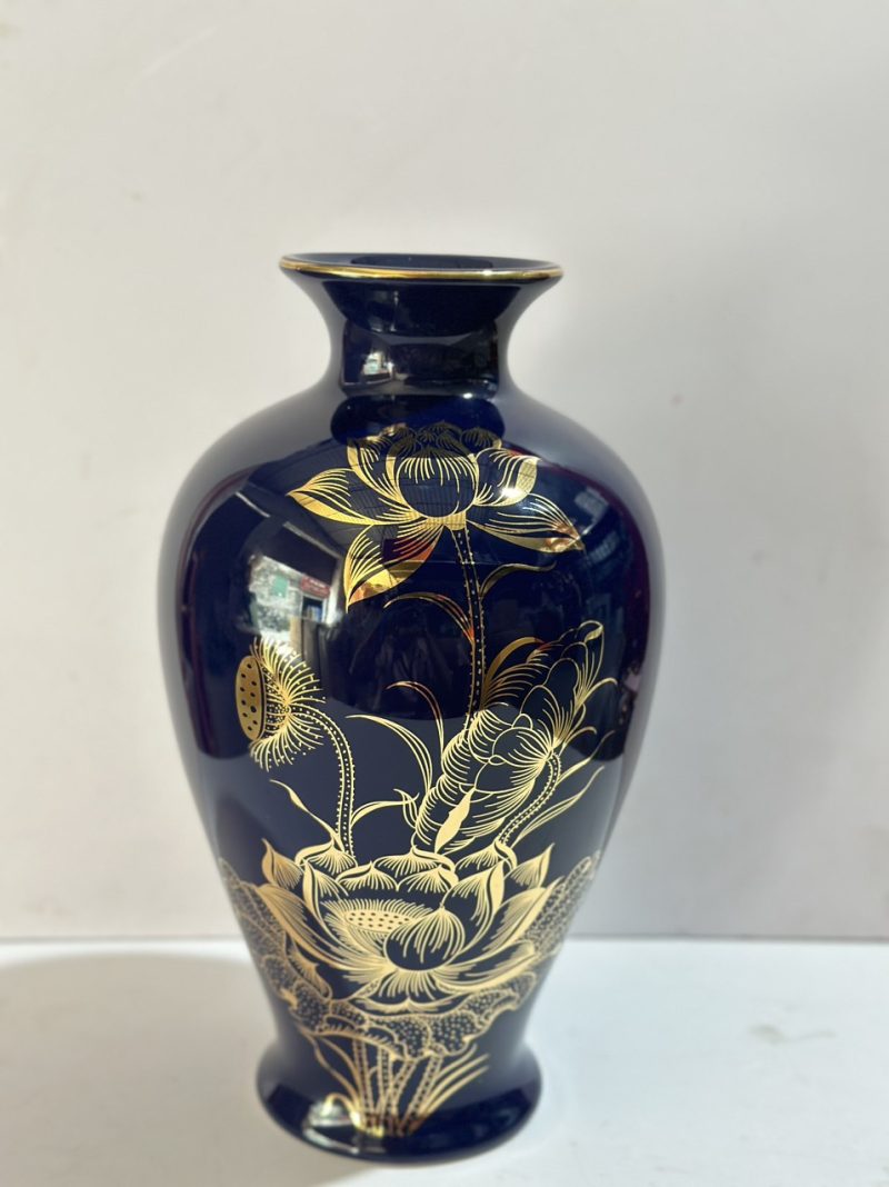 Lọ hoa Dáng thon cao vẽ sen đen – men trắng – H36.5