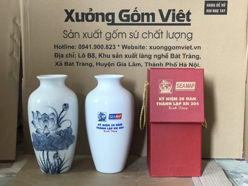 Hãy là người đầu tiên nhận xét “Lọ hoa lộc bình vẽ tay – Hoa sen kép – men trắng – H29”