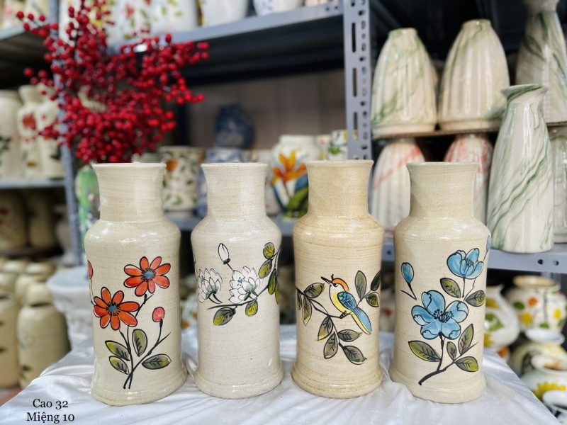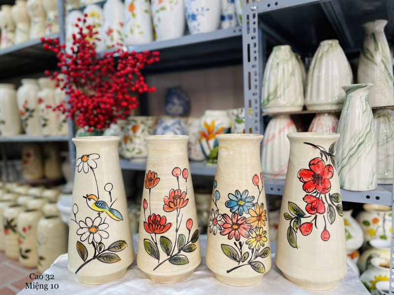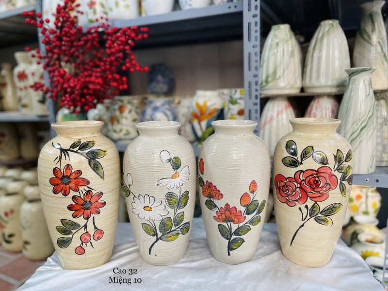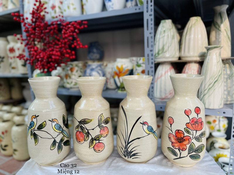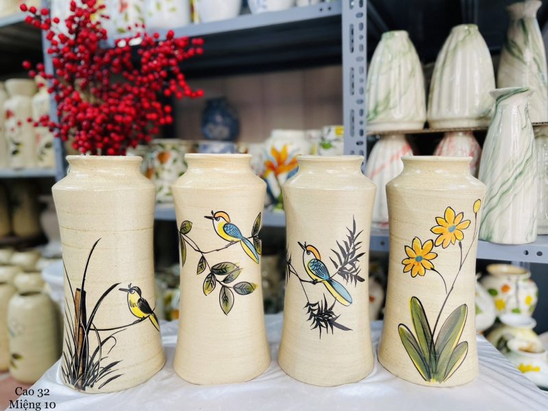 Hãy là người đầu tiên nhận xét “Lọ hoa vẽ tay – men mộc – H32”