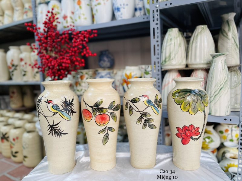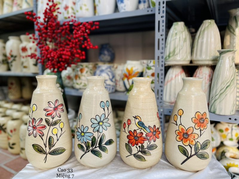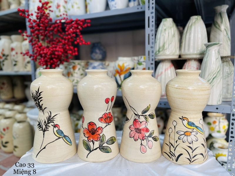 Hãy là người đầu tiên nhận xét “Lọ hoa vẽ tay – men mộc – H33”
