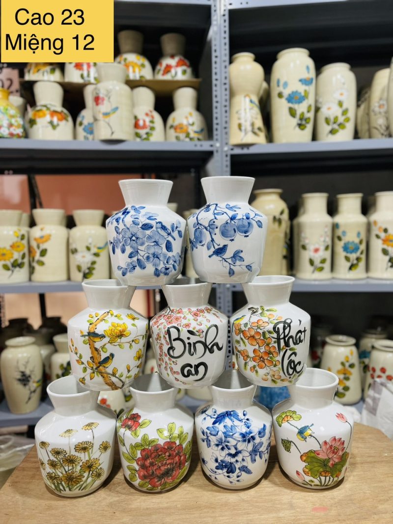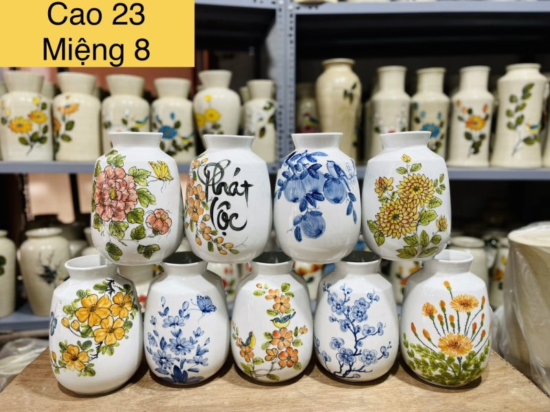 Hãy là người đầu tiên nhận xét “Lọ hoa vẽ tay – men trắng khử – H23”