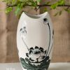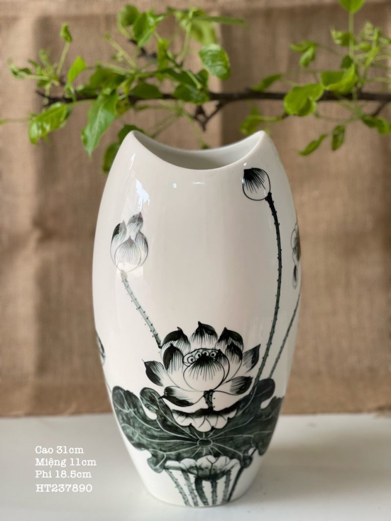 Hãy là người đầu tiên nhận xét “Lọ hoa Miệng cá vẽ sen đen – men trắng – H31”