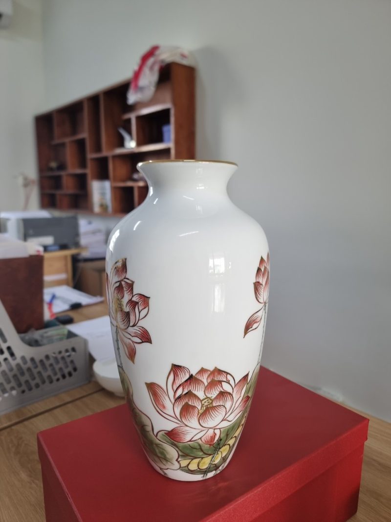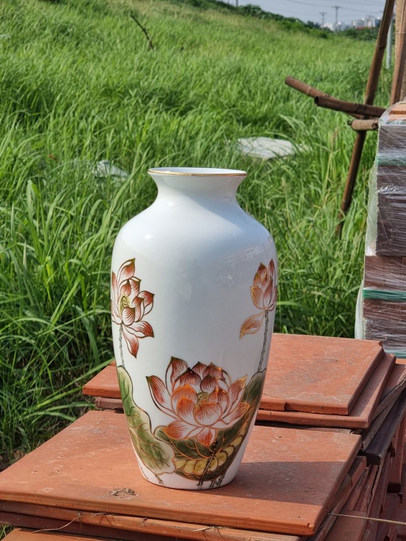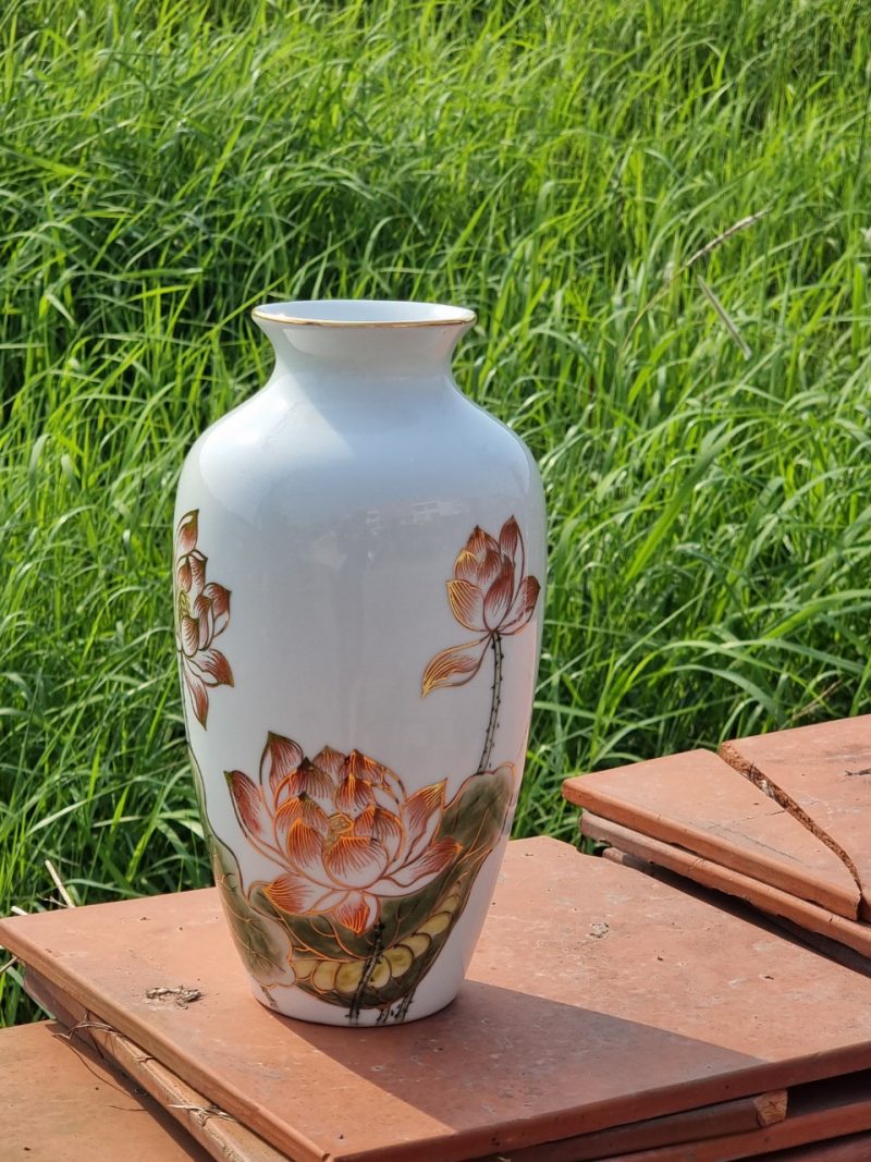 Hãy là người đầu tiên nhận xét “Lọ hoa sen hồng- vẽ vàng– H29”