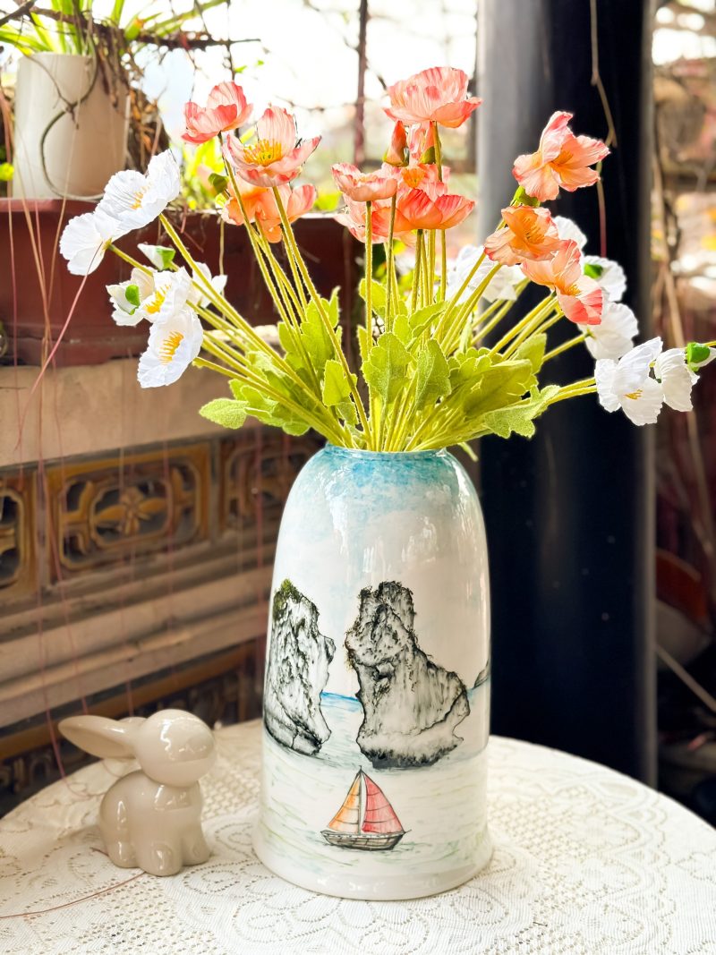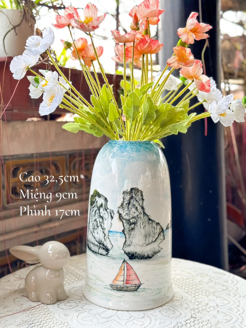 Hãy là người đầu tiên nhận xét “Lọ hoa vẽ tay kín bình – H32”