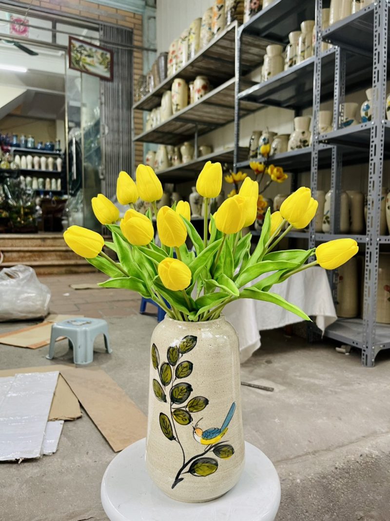 - Kích thước: Chiều cao 25cm, miệng rộng 8cm – thích hợp cắm hoa tươi hoặc làm vật décor