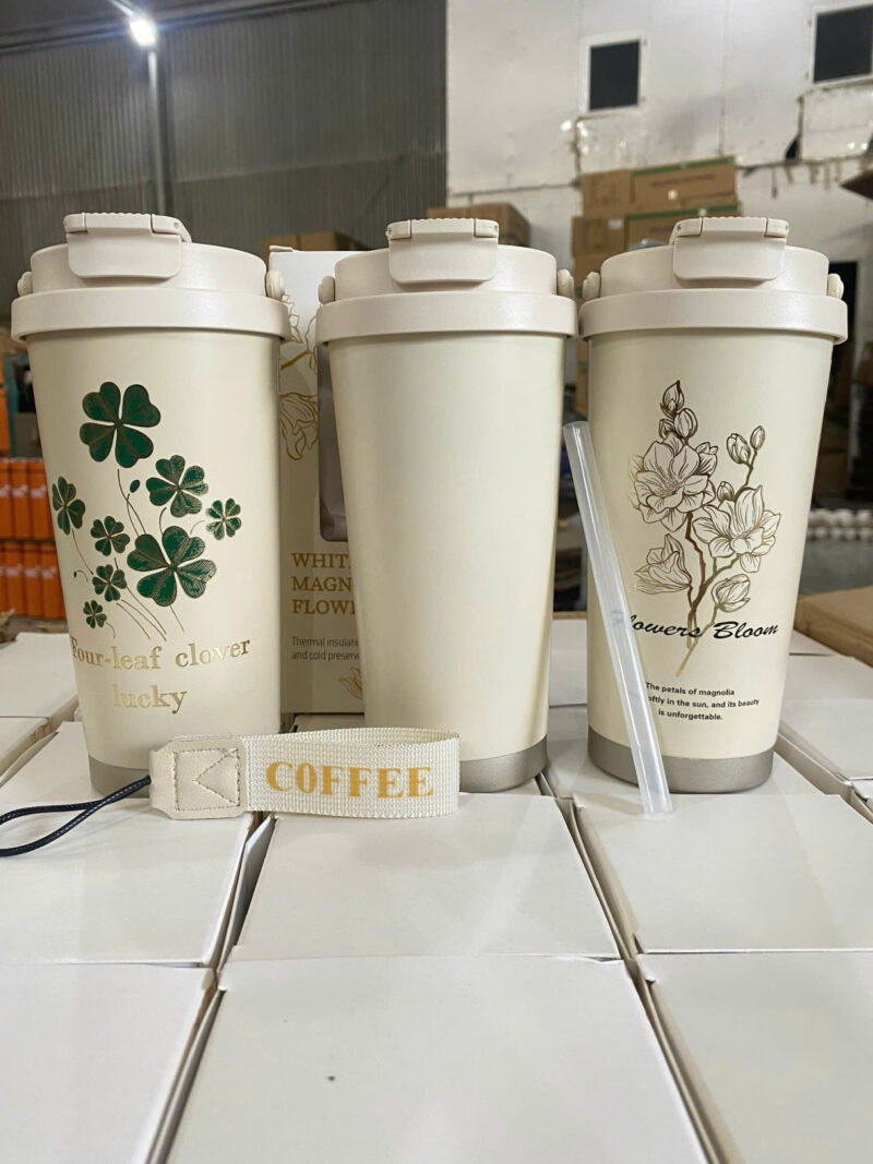 Ly giữ nhiệt in logo cho phép tùy biến cao với các lựa chọn nắp bấm, nắp bật, nắp vặn, kèm ống hút hoặc quai xách tiện dụng. Doanh nghiệp có thể chọn in 1 mặt hoặc 2 mặt, kết hợp họa văn và logo để tạo sản phẩm quà tặng mang đậm dấu ấn thương hiệu. Màu sắc và hoa văn có thể phối hợp linh hoạt, phù hợp với nhận diện từng chiến dịch marketing cụ thể.